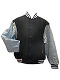 Beautiful Letterman Jackets. Wool body with leather sleeves. Features our distinctive "full-action" sleeves for extreme comfort. Supple leather lay-back collar-same color as sleeve. Quilted lining. Inside pocket. Leather-bound front pockets. Zippered front closure and snapped storm flap